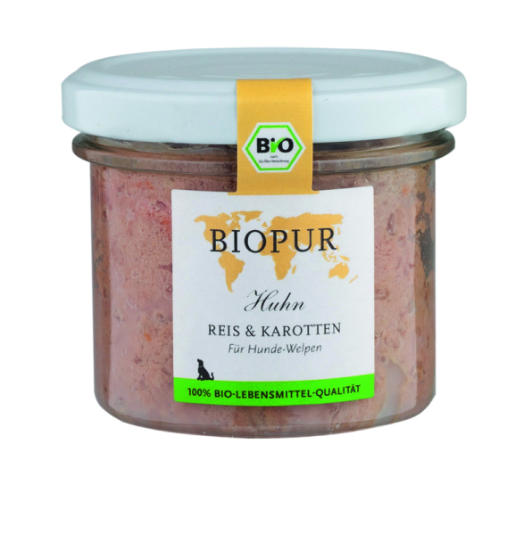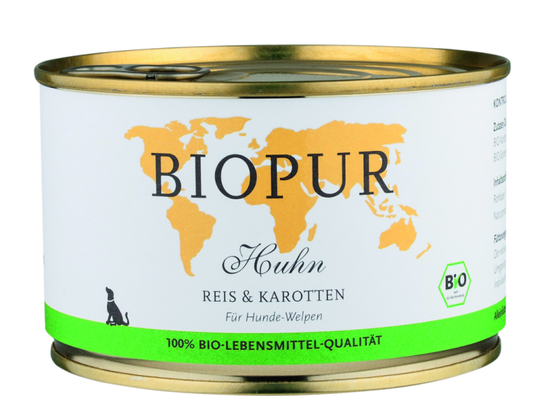 Alleinfuttermittel für Welpen aus kontrolliert biologischem Anbau (DE-ÖKO-006).